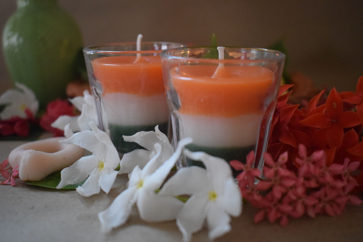 with the 3 colours of Indian flag, saffron, white and green, this candle is meant to be a representation of the Indian flag. scented with chandan or Sandalwood. made with eco friendly pure soy wax. Made with heat proof glass. Can be kept anywhere. Perfect for national holiday celebrations
